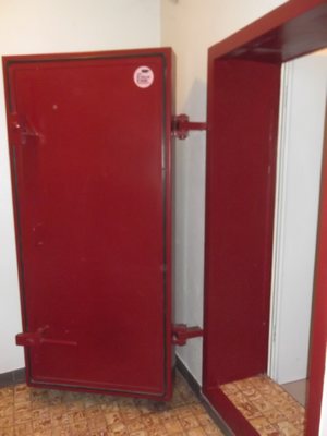 "........... maar nieuwsgierig geworden toch maar de trappen af naar de kelder, waar achter een dikke rode kluisdeur de toiletten zijn. ............."