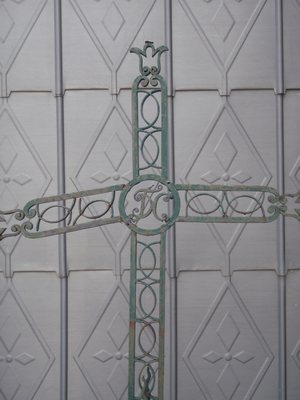 "........... en de gedecoreerde zinken gevelbekleding van een kerk ............."