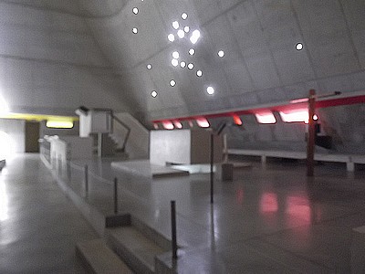 "........... Daarop staan de geëigende rekwisieten: een altaar, een preekstoel en een doopvont. Het hoogtepunt is echter het “achterdoek”, ............."