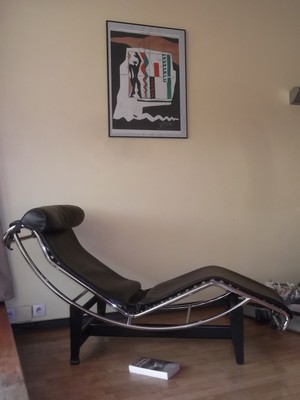 "........... meubilair, kleuren, een ingelijste overdruk van de Modulorpagina uit La Poème de l'Angle Droit, ............."