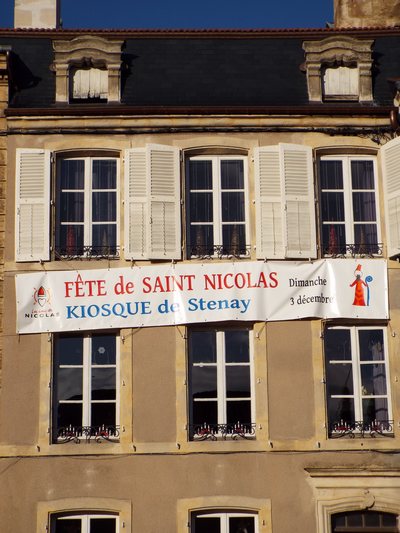 "........... Op de gevel van zijn kantoor werd het Fête de Saint-Nicolas aangekondigd, ............."