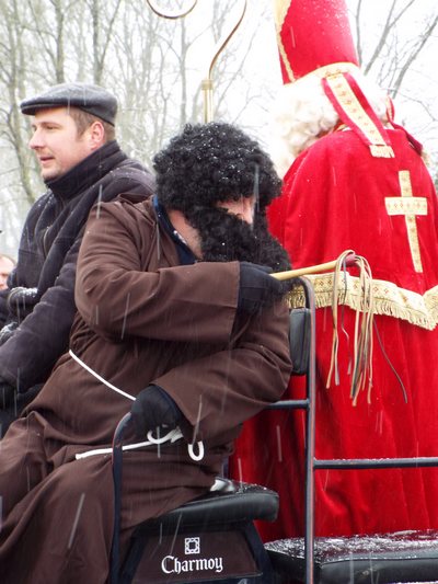 "........... Uit het niets heeft Saint-Nicolas opeens gezelschap gekregen van Père Fouettard, een slordig geklede monnik die met een “martinet“ zwaait, een zweepje met een stuk of tien strengen. ............."