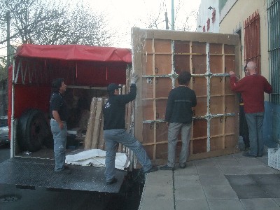 "........... Eén ervan moest zelfs uit elkaar worden gehaald om in de vrachtauto te passen! Gelukkig was het een werk dat is opgebouwd uit meerdere kleine paneeltjes die met stevige bouten en moeren bij elkaar worden gehouden. ............."