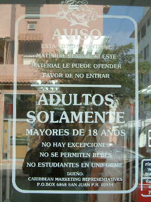 ".............. . Om de hoek nog meer leuke aanbiedingen, bij “Condom World.” Een winkel voor echte liefhebbers, maar verboden toegang voor minderjarigen, baby’s en studenten in schooluniform” volgens de sticker op de voordeur althans. ...................."