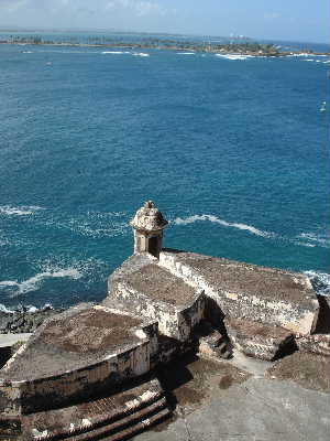 ".............. Het uitzicht over de Atlantische Oceaan en de overkant van de baai is spectaculair en dat in de richting van de stad en de andere vestingwerken niet minder. ....................."