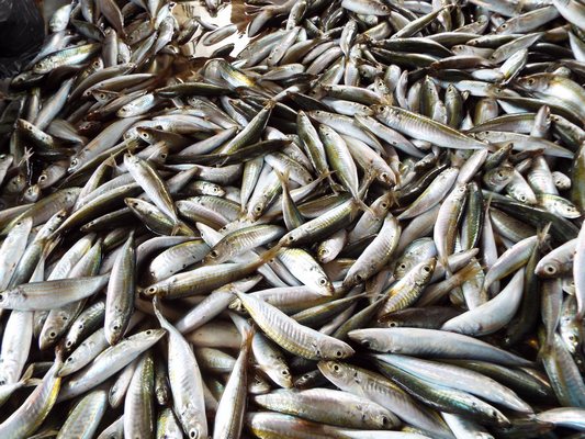 "........... Vervolgens naar de vismarkt, waar de mannen die er werken niet gefotografeerd willen worden, ik houd het dus maar bij de overvloed aan vers gevangen sardines. ............."