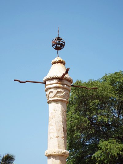 "........... "Op de in de Manuelstijl (Portugese gothiek) gebouwde zuil staat een armillairsfeer, die in die tijd het symbool was van de zeevaarders,” meldt het bijschrift van de plaatselijke VVV. ............."
