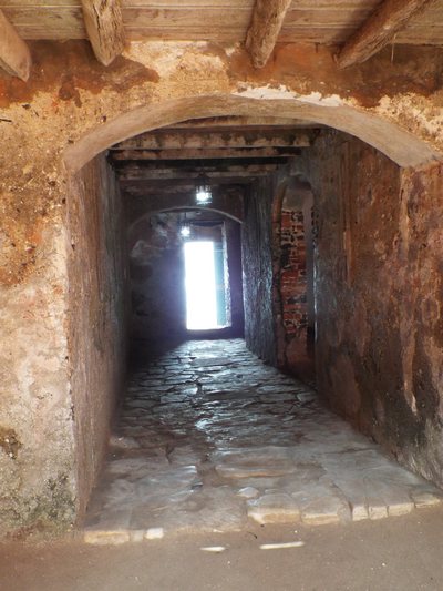 "........... opslagruimte voor de slaven beneden inclusief een poortje naar zee van waaruit de slaven naar de schepen werden geroeid die voor de kust voor anker lagen. ............."