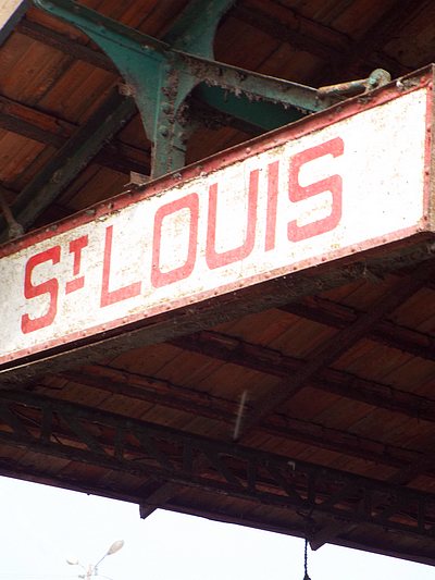 "........... Het metalen bord waarop met rode letters “St LOUIS” staat, hangt gewoon nog aan een van de metalen perronbalken, ............."