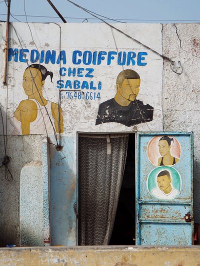 "........... Rond het stationsgebouw zijn kapperswinkels met de haarstijlen die worden geknipt of gekapt op de gevel en de deuren geschilderd, ............."