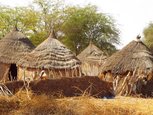 "........... Daarna weer kleine traditionele dorpjes die bestaan uit groepjes hutten van takken of riet met een dak van gevlochten gras ............."