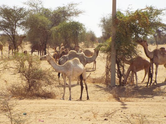 "........... en nomaden met kuddes dromedarissen die de laaghangende takken van de acacia's kaal vreten. ............."
