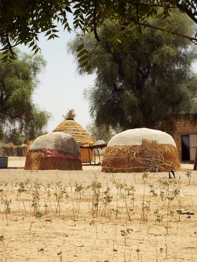 "........... Na nog meer kilometers richting Diourbel, met langs de weg dorpen waar veel lage onderkomens met een rond dak staan die me aan iglo's doen denken, ............."