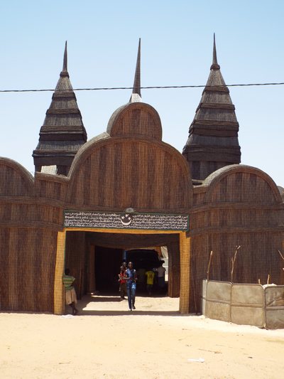 "........... aan de linkerkant opeens een bijzonder bouwwerk. Zowel qua vormgeving als het gebruikte bouwmateriaal: stevig riet. “Een moskee, wil je even kijken?” vraagt Amadou geheel ten overvloede. ............."