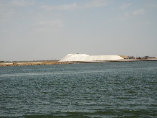 "........... Het enige dat er op de kades aan de overkant van de rivier tegenover het terras van mijn hotel ligt zijn voor de verandering hoge bergen zout....... ............."