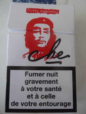 "........... ze haalt een pakje sigaretten uit haar handtas, steekt er een op en legt het pakje daarna op tafel. Tot mijn stomme verbazing zie ik de kop van Che Guevara zoals ooit op de foto gezet door Alberto Korda, ............."