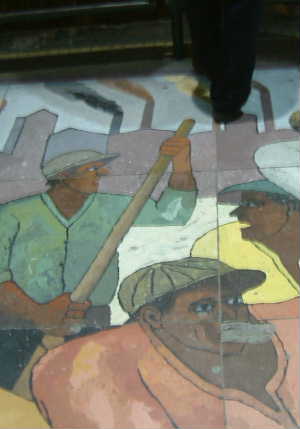 "........... Voor de ingang van de school ligt een tegeltableau, ............"