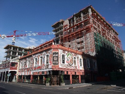 "........... Nu steekt de Victoriaanse oudbouw van de Langstraat kleurig en schril af tegen een grauw betonnen skelet waarin vast en zeker een hotel zal worden gevestigd of appartementen. ............."
