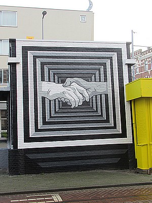 "........ hebben deze drie muurschilderingen veel diepte en is er nauwelijks het smetteloze Omo-wit van de overkant gebruikt. ............."