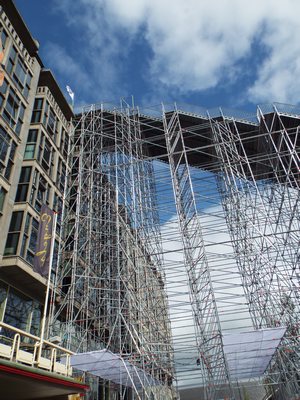 "........... Met al die steigerpijpen lijkt het nogal fragiel, maar het wordt uiteindelijk toch een luchtig en solide bouwwerk. ............."
