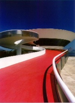 Het Museum voor Hedendaagse Kunst in Niteroi, een ontwerp van Oscar Niemeyer. Een prachtig gebouw met een onbeschrijflijk slechte collectie.
