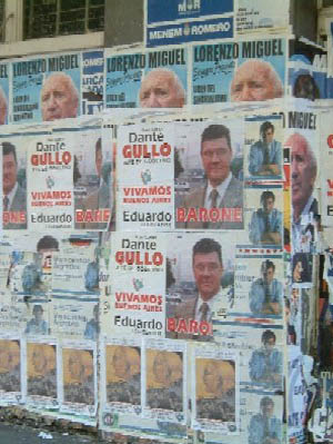 Een typische wildgeplakte muur in het centrum van Buenos Aires